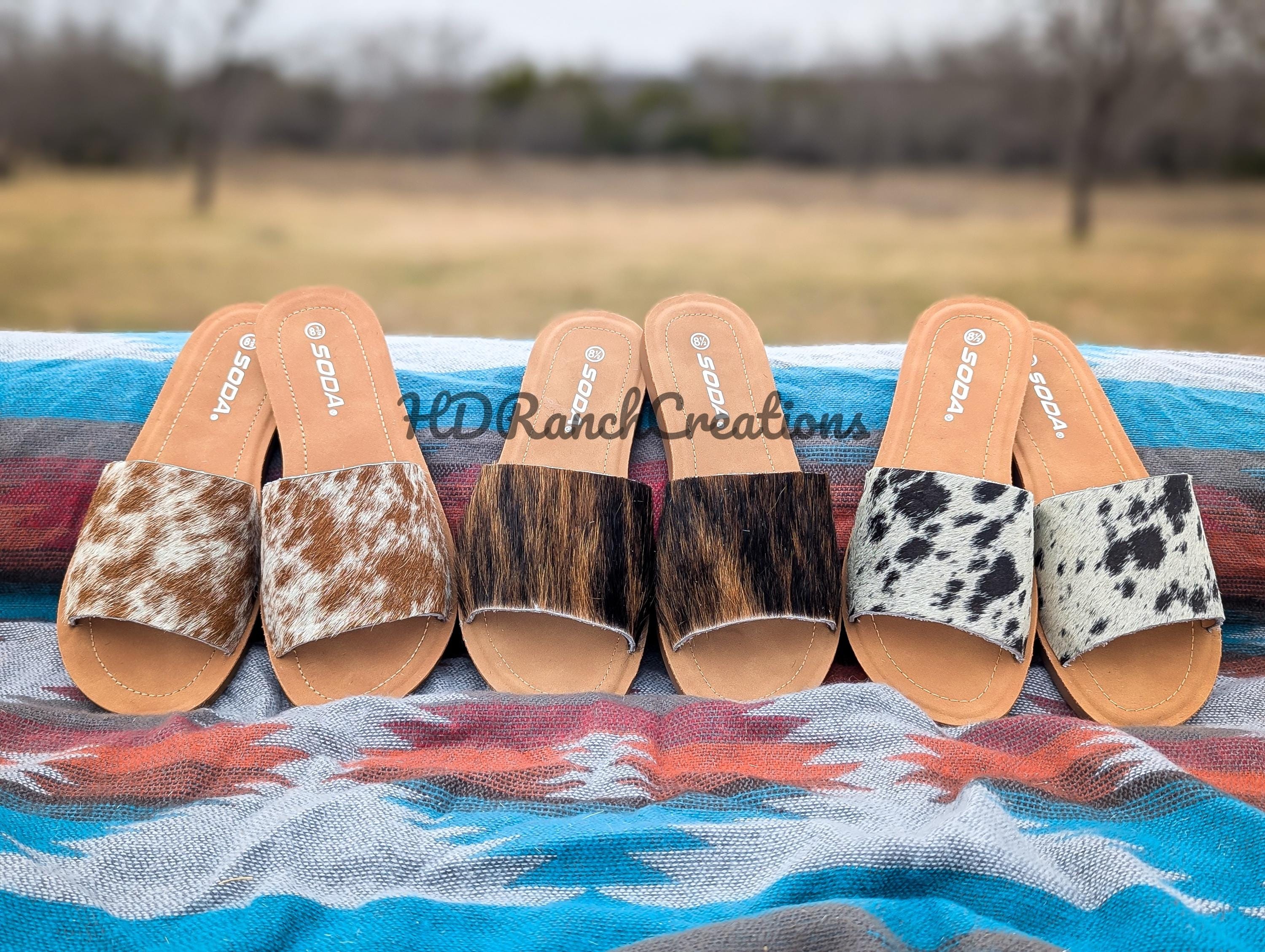 Genuine Leather Tooled and Cowhide Western Sandals Outdoor Flipflops Footwear