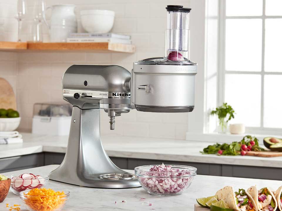 Put away the knife for now and let your stand mixer do the hard work. Whether you’re shredding, slicing, dicing or making julienne strips, you can process ingredients at home via your KitchenAid stand mixer’s attachment hub. Crunchy salsa, veggie curry… which dish will you start with?