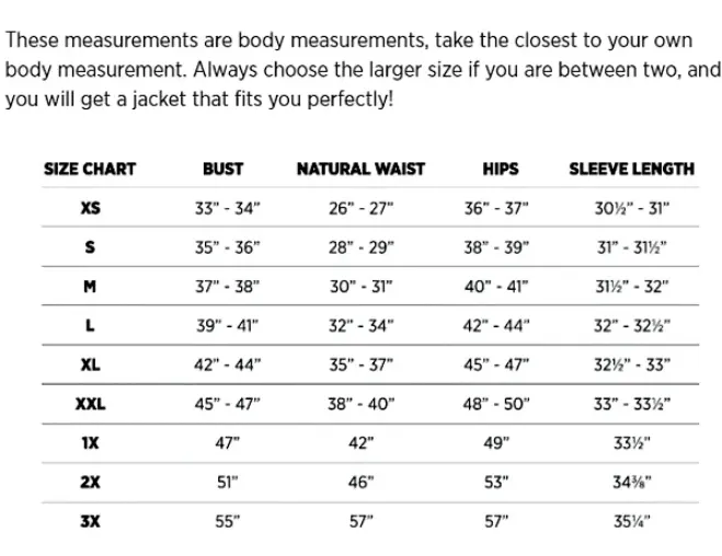 Fit & Size chart