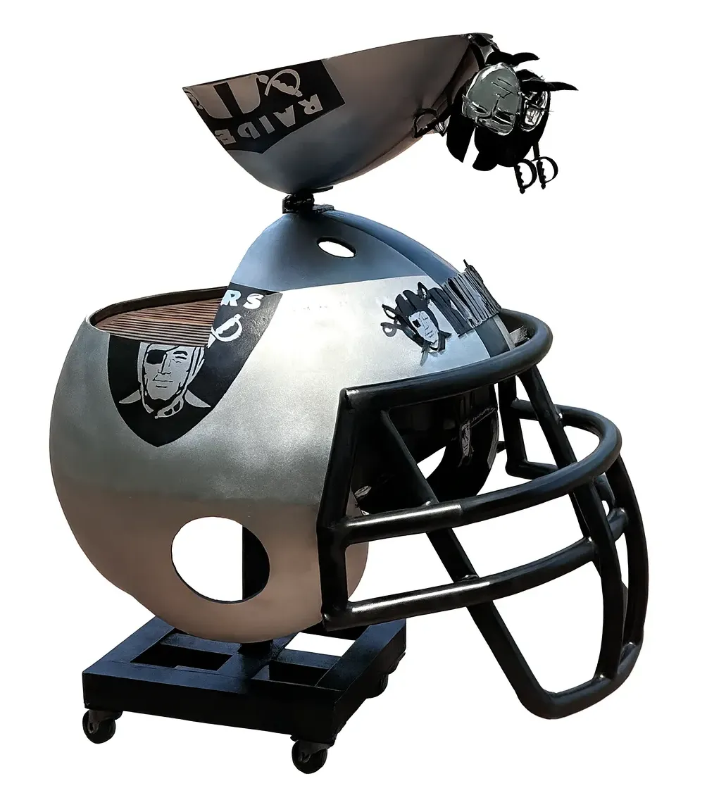 Each NFL Team Helmet BBQ Grill is a handcrafted masterpiece, made by skilled artisans who merge traditional metalworking with team pride. Shaped to resemble an authentic football helmet, every grill is individually cut, welded, and finished with meticulous detail. From the polished facemask to the embossed team lettering, no two grills are exactly alike—each one is a unique piece of functional art.